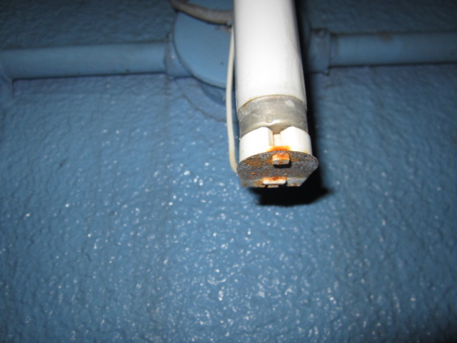 水を拭き取り、新しい蛍光管に交換しましても点きません。